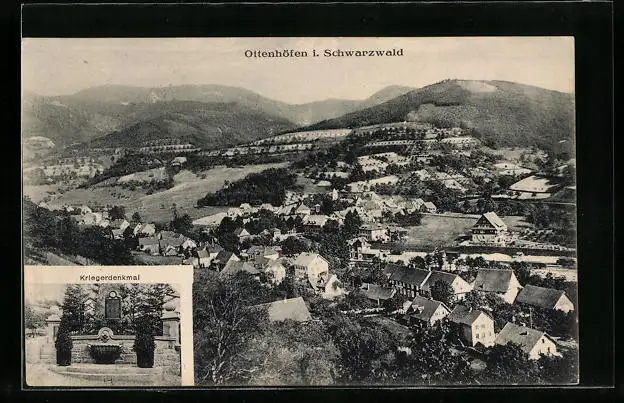 AK Ottenhöfen, Totalansicht, Kriegerdenkmal