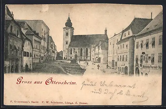 AK Ottensheim, Strassenpartie mit Kirche