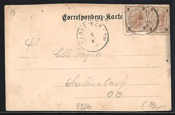 alte Ansichtskarte, gelaufen 1900, oben und unten beschnitten