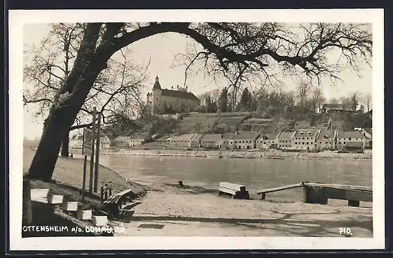 AK Ottensheim a. d. Donau, Uferpartie mit Schloss