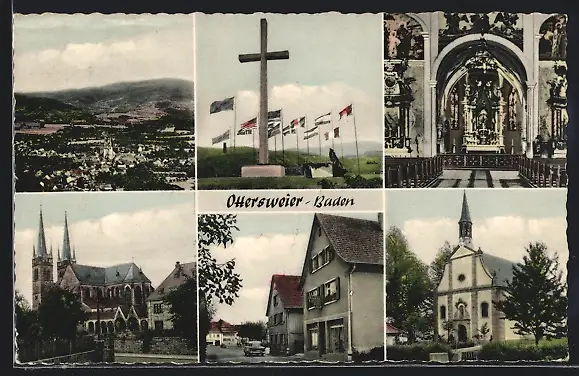 AK Ottersweier, Ortsansicht, Denkmal, Kirche und Inneres