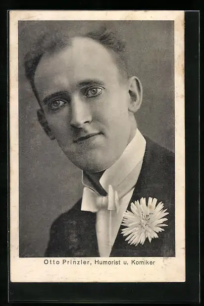 AK Otto Prinzler, der Humorist und Komiker im Abendanzug mit Ansteckblume