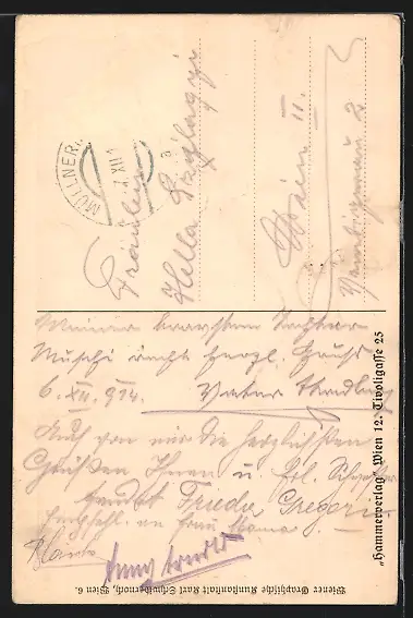 alte Ansichtskarte, gelaufen, Briefmarke entfernt, rückseitig Oberflächenschaden, Bugspur mittig, guter Zustand