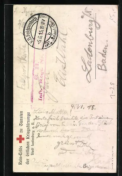 alte Ansichtskarte, gelaufen 1915, Stempelspur, guter Zustand