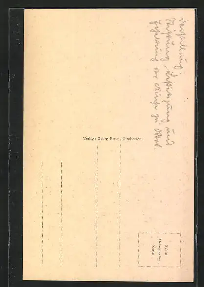 Personenbezogene Daten auf der Rückseite der Karte wurden durch blauen Textmarker unkenntlich gemacht. Die blauen Stellen sind auf die Vorderseite durchgeweicht und wirken sich negativ auf das Postkartenfoto aus