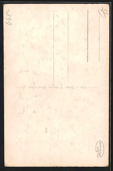 Personenbezogene Daten auf der Rückseite der Karte wurden durch blauen Textmarker unkenntlich gemacht. Die blauen Stellen sind auf die Vorderseite durchgeweicht und wirken sich negativ auf das Postkartenfoto aus