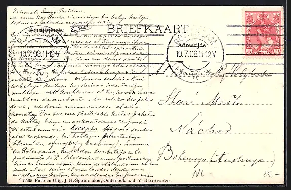 gelaufen 1908, Eckknick re. unten, guter Zustand