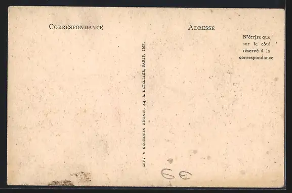 Personenbezogene Daten auf der Rückseite der Karte wurden durch blauen Textmarker unkenntlich gemacht. Die blauen Stellen sind auf die Vorderseite durchgeweicht und wirken sich negativ auf das Postkartenfoto aus