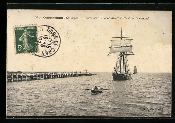 AK Ouistreham, Entrée d`un Trois-Mâts-Goelette dans le Chenal