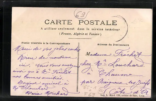 Personenbezogene Daten auf der Rückseite der Karte wurden durch blauen Textmarker unkenntlich gemacht. Die blauen Stellen sind auf die Vorderseite durchgeweicht und wirken sich negativ auf das Postkartenfoto aus