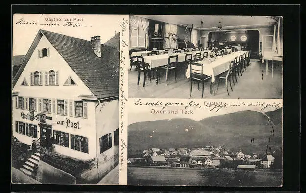AK Owen-Teck, Gasthof zur Post-Krone, Innenansicht, Teilansicht