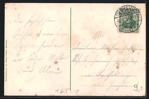 gelaufen 1914, Eckknick oben links, guter Zustand