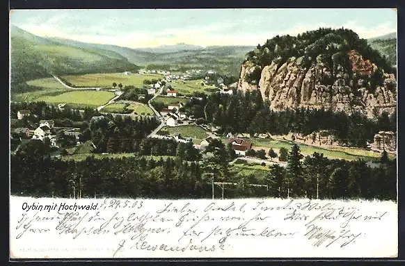 AK Oybin, Blick auf den Hochwald und den Ort