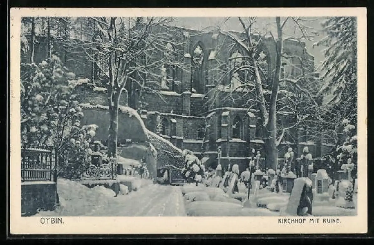 AK Oybin, Kirchhof mit Ruine