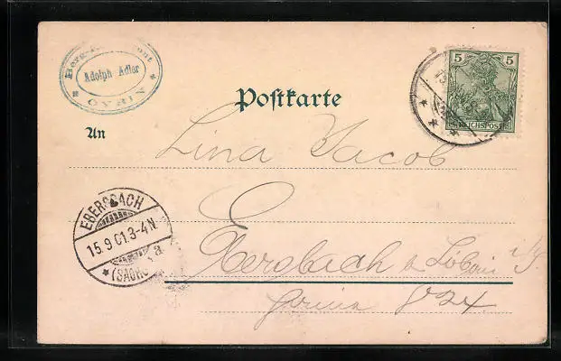 alte Ansichtskarte, gelaufen 1901, Stempelspur, guter Zustand