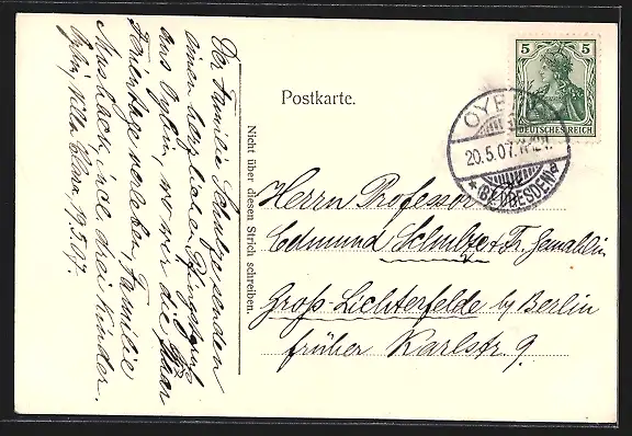 alte Ansichtskarte, gelaufen 1907, guter Zustand