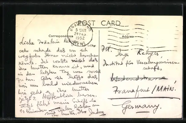 alte Ansichtskarte, gelaufen 1952, Briefmarke entfernt, Eckknick re. oben, guter Zustand