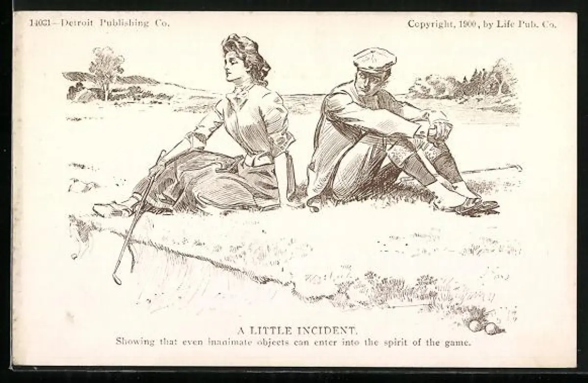 AK Paar auf dem Golfplatz, im Gras sitzend