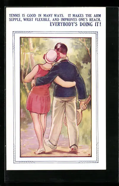 AK Paar auf dem Nachhause Weg nach dem Tennis Spiel
