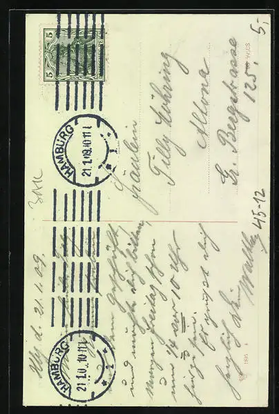 alte Ansichtskarte, gelaufen 1909, Stempelspur, guter Zustand