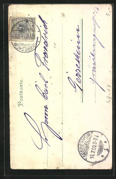 alte Ansichtskarte, gelaufen 1900, leicht fleckig, sonst guter Zustand