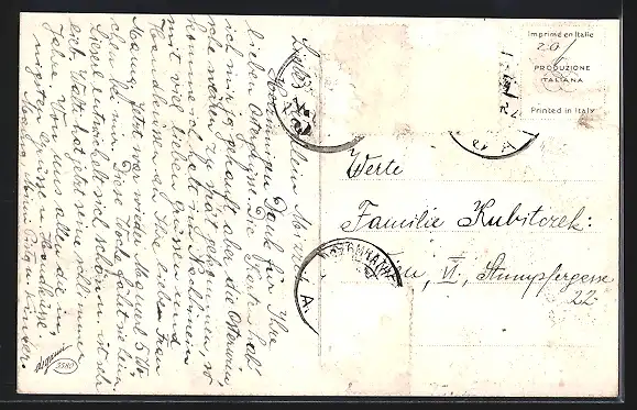 alte Ansichtskarte, gelaufen, Briefmarke entfernt, rückseitig Oberflächenschaden, Stempelspur, guter Zustand