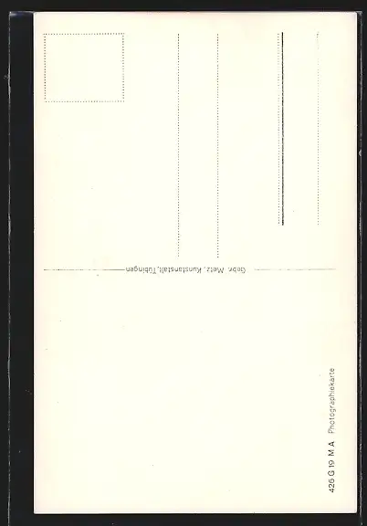 Personenbezogene Daten auf der Rückseite der Karte wurden durch blauen Textmarker unkenntlich gemacht. Die blauen Stellen sind auf die Vorderseite durchgeweicht und wirken sich negativ auf das Postkartenfoto aus