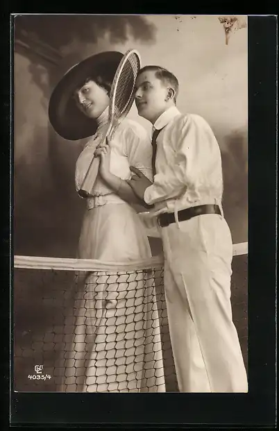 AK Paar in Tenniskleidung spricht vor dem Spiel