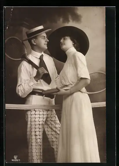 AK Paar in Tenniskleidung spricht vor dem Spiel