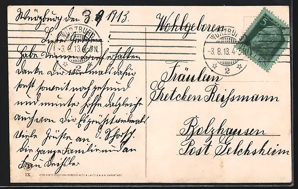 alte Ansichtskarte, gelaufen 1913, Stempelspur, guter Zustand