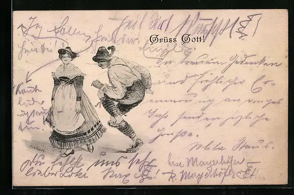AK Paar in Trachtenkleidung bei einem Volkstanz