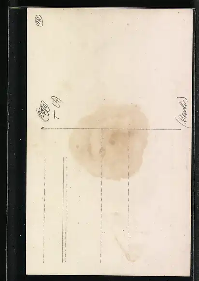 Personenbezogene Daten auf der Rückseite der Karte wurden durch blauen Textmarker unkenntlich gemacht. Die blauen Stellen sind auf die Vorderseite durchgeweicht und wirken sich negativ auf das Postkartenfoto aus