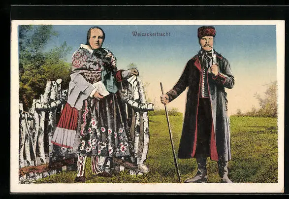 AK Paar in Weizackertracht auf einer Wiese