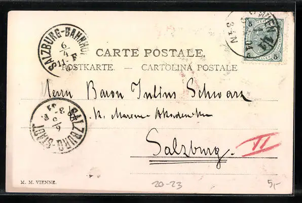 alte Ansichtskarte, gelaufen 1901, Stempelspur, guter Zustand