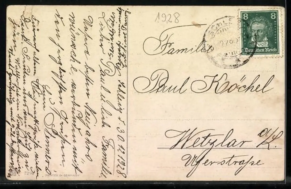 alte Ansichtskarte, gelaufen 1928, Eckknicke re., guter Zustand