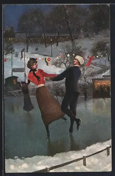 AK Paar tanzt auf Schlittschuhen übers Eis