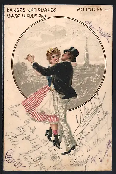 AK Paar tanzt den Wiener Walzer, Danses Nationales, Valse Viennoise