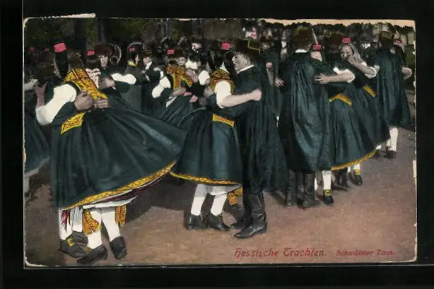 AK Paare in hessischen Trachten beim Schwälmer Tanz