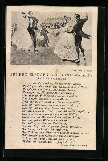 AK Paare tanzen zu den Klängen des Donauwalzers