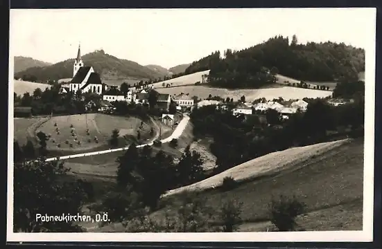 AK Pabneukirchen /O. Ö., Strassenpartie mit Kirche