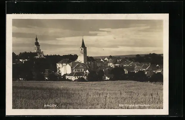 AK Pacov, Teilansicht mit Kirche