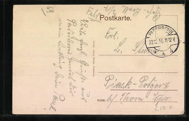 alte Ansichtskarte, gelaufen 1916 als Feldpost, Eckknick re. oben, guter Zustand