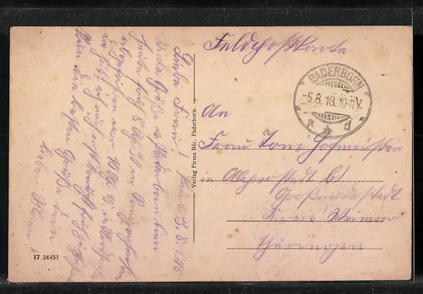 alte Ansichtskarte, gelaufen 1918 als Feldpost, guter Zustand