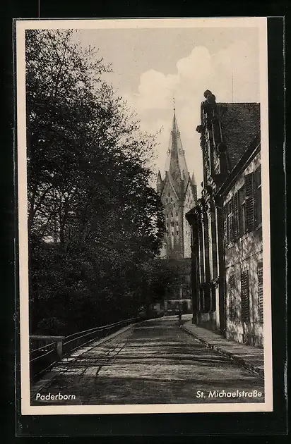 AK Paderborn, St. Michaelstrasse mit Kirchturm