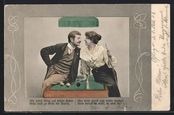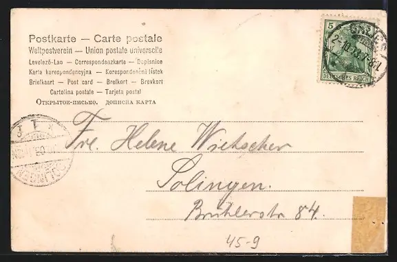 alte Ansichtskarte, gelaufen 1903, rückseitig Klebe- und Papierreste, Eckknicke li., geklebter Einriss re. unten, guter Zustand
