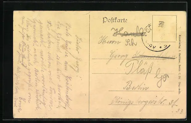 alte Ansichtskarte, gelaufen, Briefmarke entfernt, guter Zustand