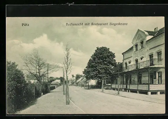 AK Pätz, Strassenpartie mit Restaurant Siegeskranz