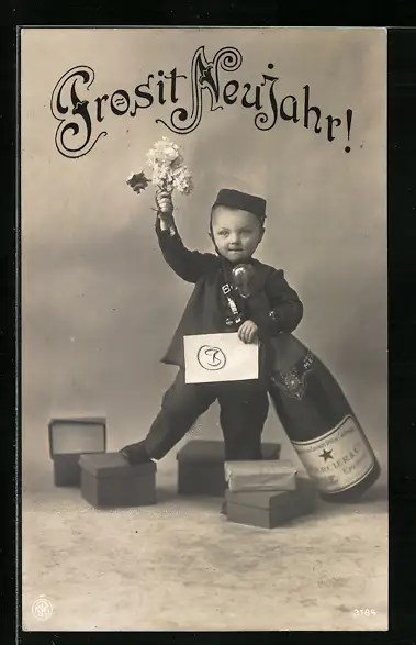 AK Page mit riesiger Sektflasche wünscht Prosit Neujahr!