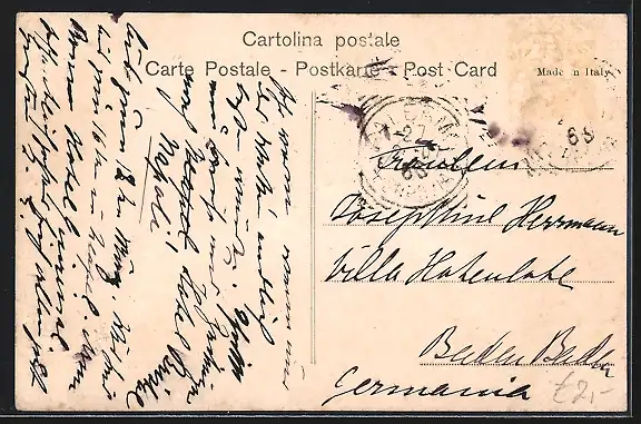 alte Ansichtskarte, gelaufen, Briefmarke entfernt, guter Zustand