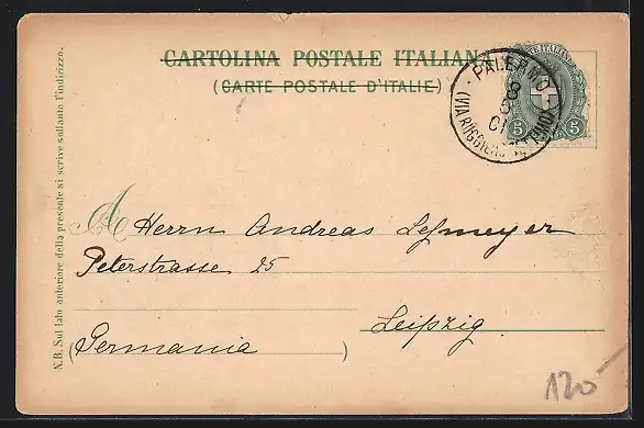 gelaufen 1901, Briefmarke entfernt, guter Zustand